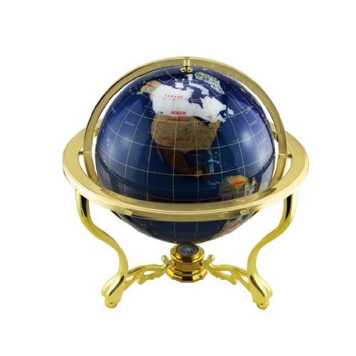 !9# American Atelier Polished Stone Globe with Low Brass Stand, Blue